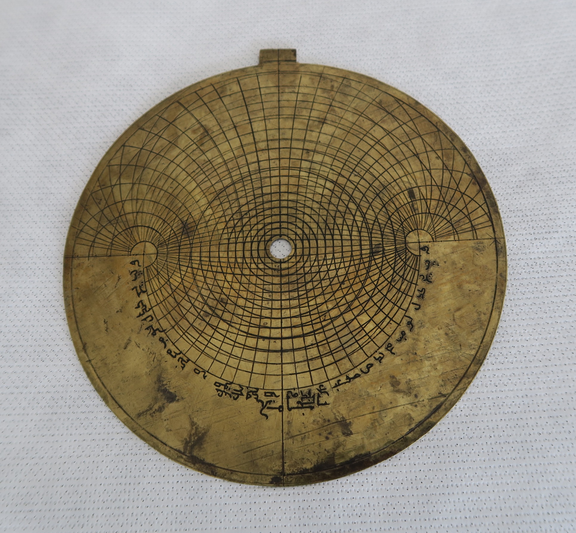 Dit antieke messing meetinstrument was in de loop der jaren vaak gepoetst waarbij poetsmiddelresten waren achtergebleven in de gravering. door deze te verwijderen en een microkristallijne was aan te brengen zijn de gravures weer leesbaar.