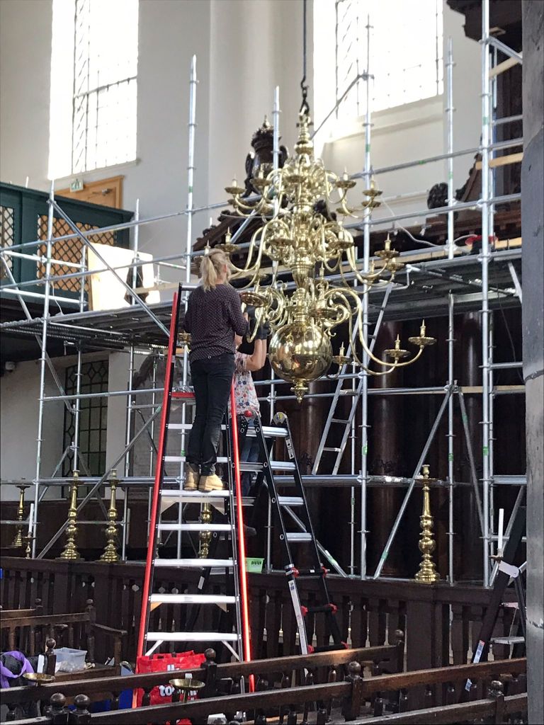 In samenwerking met M. Langeveld Metaalrestauratie zijn tussen 2020 en 2023 de lichtarmaturen van de Portugese synagoge in Amsterdam gerestaureerd. Omdat in de synagoge geen elektrisch licht gebruikt wordt worden de kroonluchters, wandblakers en kandelaren intensief gebruikt. De laklaag op de messing onderdelen was sleets geworden, er zat veel kaarsvet op de objecten en er waren beschadigingen en ontbrekende delen.